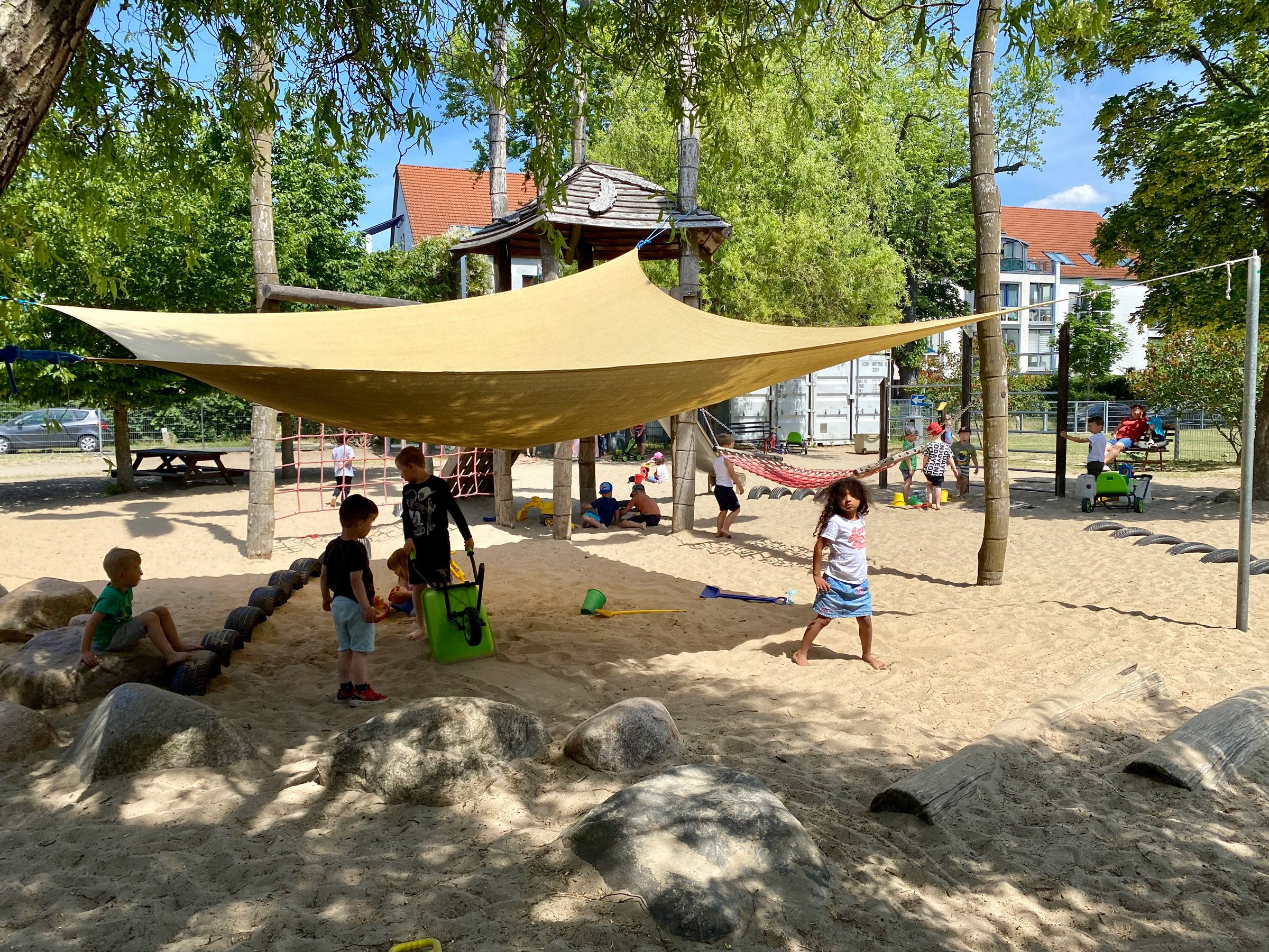 In einem sicheren Rahmen können sich die Kinder im Haus geborgen fühlen, frei bewegen, soziale Kontakte aufbauen und leben. In den Funktionsräumen und im großzügigen Außenbereich können die Kinder ihren Interessen nachgehen, eigene Erfahrungen machen und vielfältige Bereiche der Bildung erleben. Sie haben die unterschiedlichsten Möglichkeiten mit ihrer kindlichen Neugier, ihrem Lernwillen und Forscherdrang eigenständig, auch eigensinnig ihre Wege zu gehen. Beteiligung und Treffen eigener Entscheidungen der Kinder sind uns wichtig.