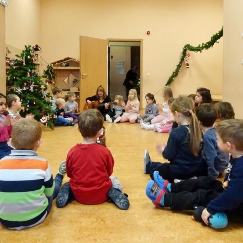 Jeweils an einem Tag in der Woche erfahren und erleben die Kinder mit der Musikpädagogin Maria und einer Erzieherin die vielen Facetten der Musik und des Theaterspielens. Dieses Angebot nutzen die Kinder im Krippen- und Kindergartenbereich sehr gerne.
